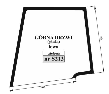 New Holland TD 5010 5020 5030 5040 5050, TD 55D 60D 65D 70D 75D 80D 85D 90 - szyba drzwi góra lewe zielona / sitodruk