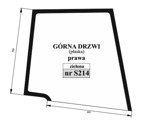 New Holland TD 5010 5020 5030 5040 5050, TD 55D 60D 65D 70D 75D 80D 85D 90 - szyba drzwi góra prawe zielona / sitodruk