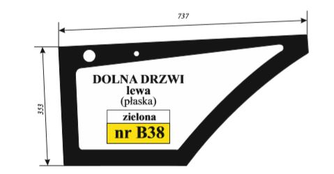 Koparko - ładowarka Volvo BL-71 - szyba drzwi dół lewa zielona