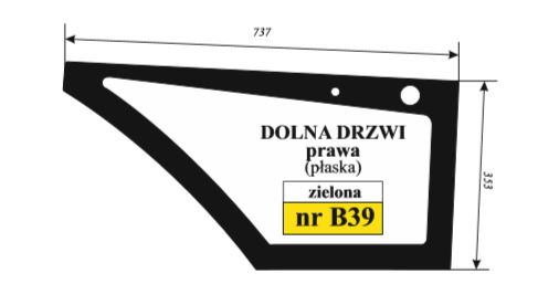 Koparko - ładowarka Volvo BL-71 - szyba drzwi dół prawa zielona